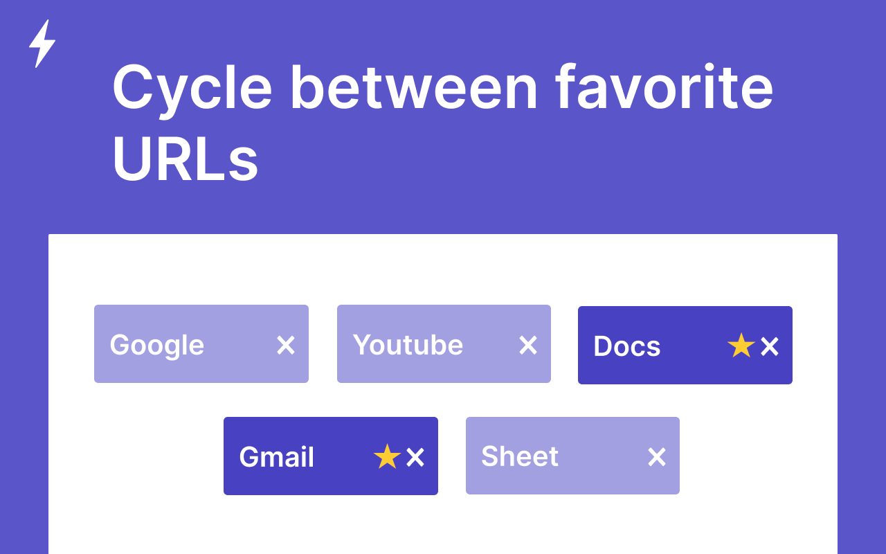 Once marked as favorite, press Alt/Option+K to cycle between all the favorite URLs that are open in your window