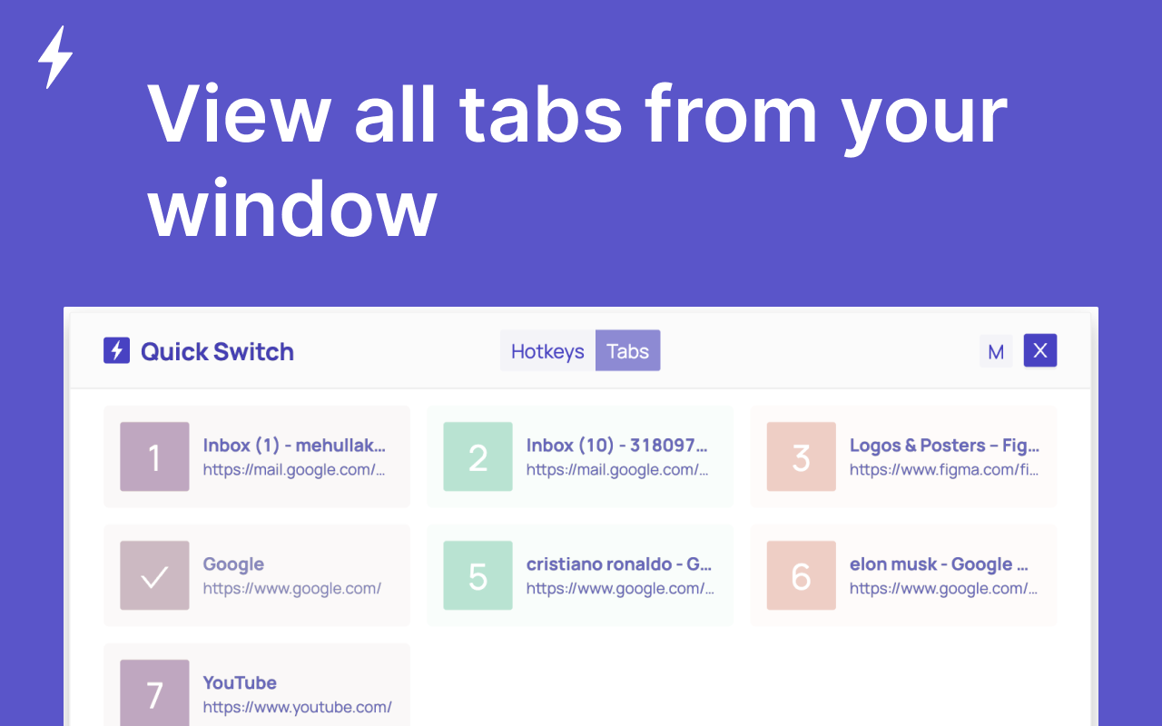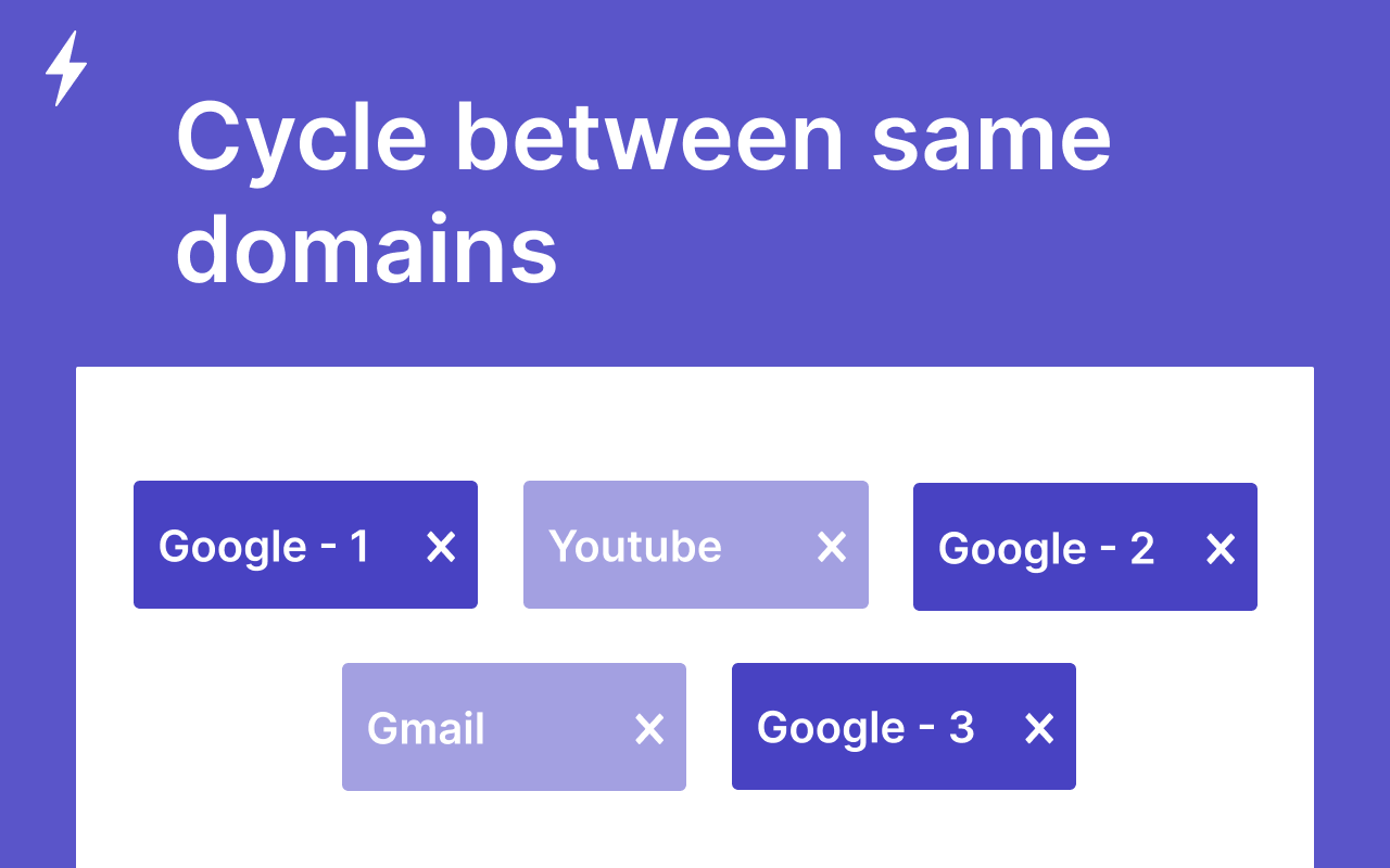 ex., If there are 3 tabs with the same domain(google.com) open in your window, use the shortcut to cycle between these tabs